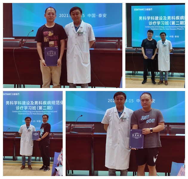 在跟诊过程中,针对临床上可能出现的问题,大家提出不少专业问题,学员和教员之间进行了充分的交流探讨,增强了学习的深度和针对性。当天下午,针对设备操作和护理,分别安排了两场理论学习,巩固和补充了的跟诊的业务内容。李腾医生为大家分享的是《设备的临床操作方面知识讲解》,主要是以三维医疗麦普泰格泌尿男科整体解决方案系列产品为主,全面讲述各个产品的基本功能,以及在诊疗过程中的产品功能相对应的临床应用。在整个的男科诊疗体系中,男科都有哪些病症,需要哪些的检测设备和手法进行诊疗,以及各类诊疗的先后顺序,临床报告的阅读和结果的判定等等。其中,三维公司的新品男性硬度检测仪和NPT组合应用,是为重点。李腾医生在最后总结道:“男科的临床诊断和治疗进入了整体化治疗新时代,各种治疗方法层出不穷,再也不是靠吃药+话聊就能解决所有问题了。善用各种治疗手段,可以让患者得到最合适的个体化治疗,感谢三维给我们提供多样的诊疗设备,希望国产品牌可以做大、做强、做精、做好。”泰安市中心医院王欣为大家分享了《浅谈男科护患沟通交流》,针对医护人员在治疗中,如何与病患沟通进行了详细阐述。沟通交流是信息传达的重要方式,也是人与人建立信任的基础和表现形式,医护的沟通看似简单,实际上要求很高,专业性很强。能否与患者进行充分的沟通,直接影响到病情的诊断、疗效以及患者后续的认可度,也直接影响后期的病源量,这也是本次学习班的重点内容。经过两天的紧张学习和研讨,男科学科建设及男科疾病规范化诊疗第二期学习班顺利结束,泰安市中心医院赵永伟主任代表泰安市中心医院和三维医疗科技有限公司为学员颁发了结业证书。男科学科高地犹如泰山,需要男科学人不畏艰险、勇于攀登。此次学习班的成功举办,对男科医务人员业务能力的整体提升和麦普泰格泌尿男科整体解决方案的完善和推广,都起到了重要的推动作用,取得了圆满的成果。